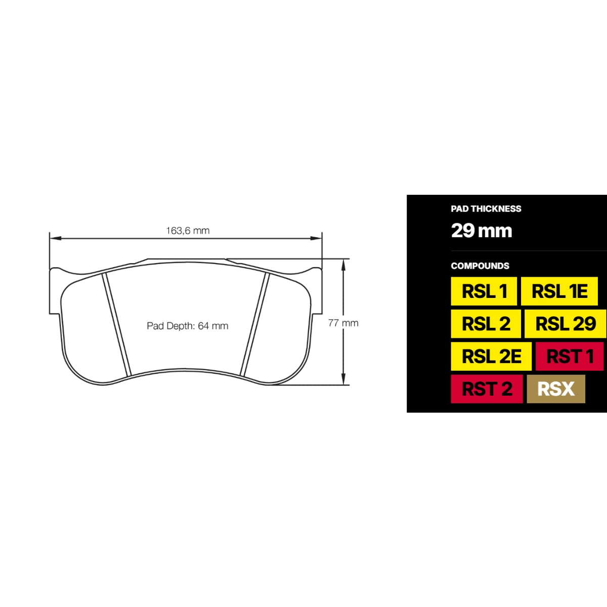 Le RSL2E est basé sur le composé RSL1E mais a été encore amélioré pour prolonger la durée de vie des plaquettes et des disques. Il s'agit d'un composé à base de résine faiblement métallisée contenant des fibres d'acier et d'aramide. De plus, il maintient un niveau de friction constant sur une large plage de températures.